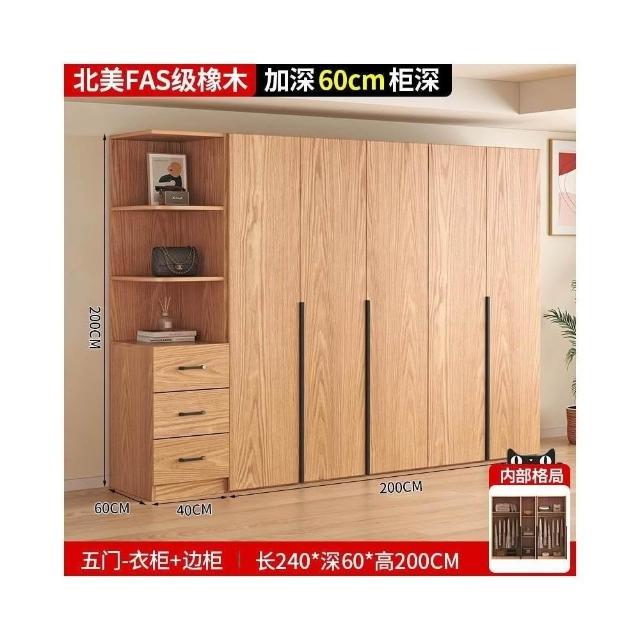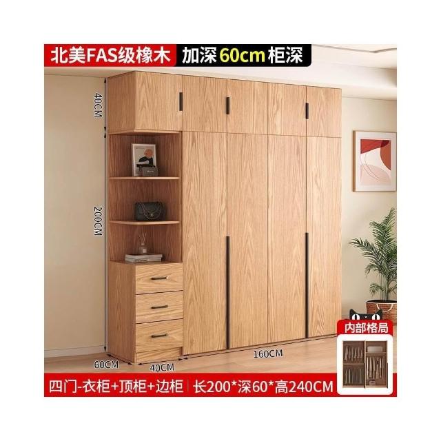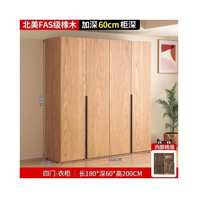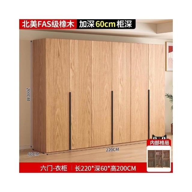 全實木橡木衣櫃家用臥室原木色櫃子可定制經濟型儲物收納兒童衣櫥