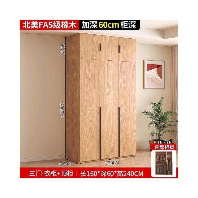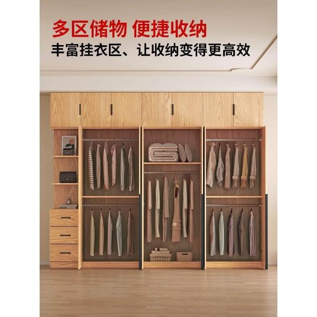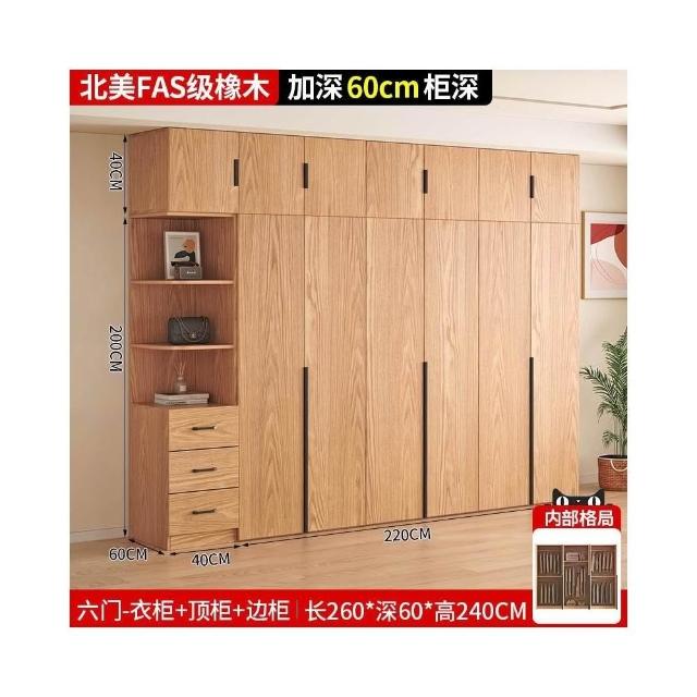 全實木橡木衣櫃家用臥室原木色櫃子可定制經濟型儲物收納兒童衣櫥