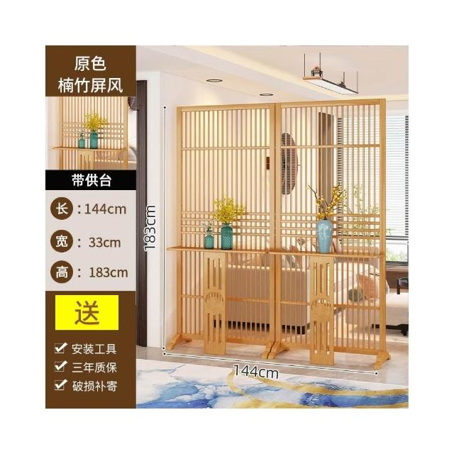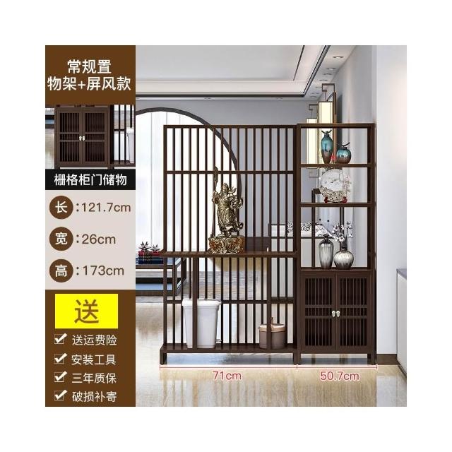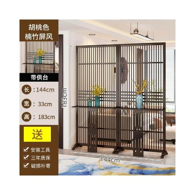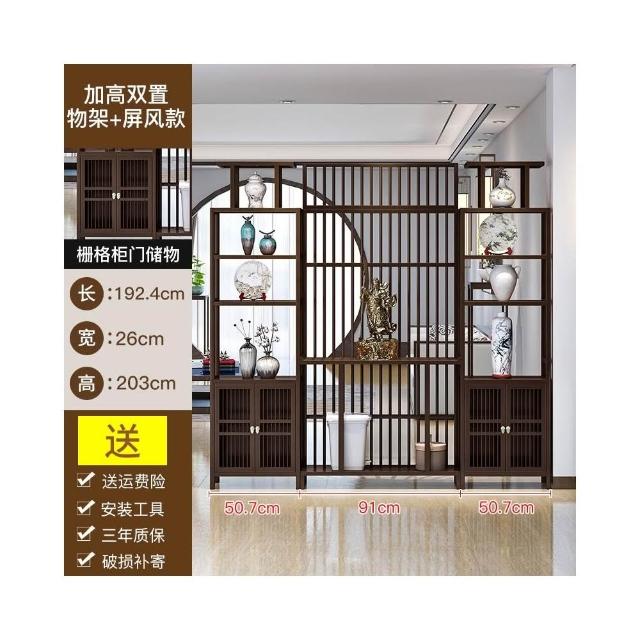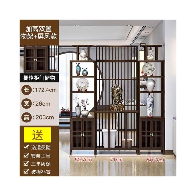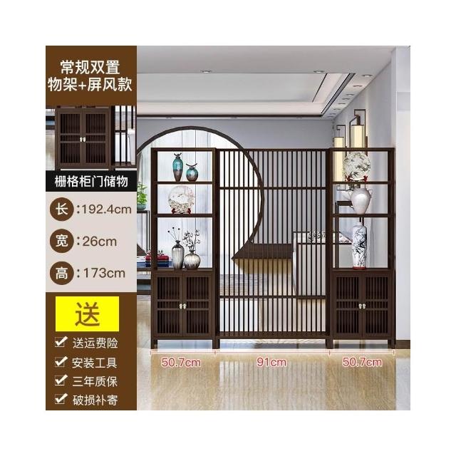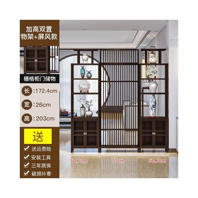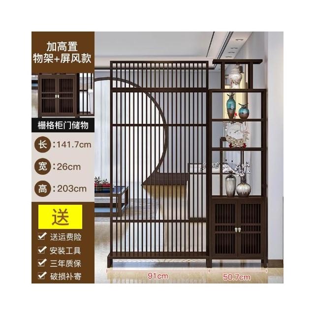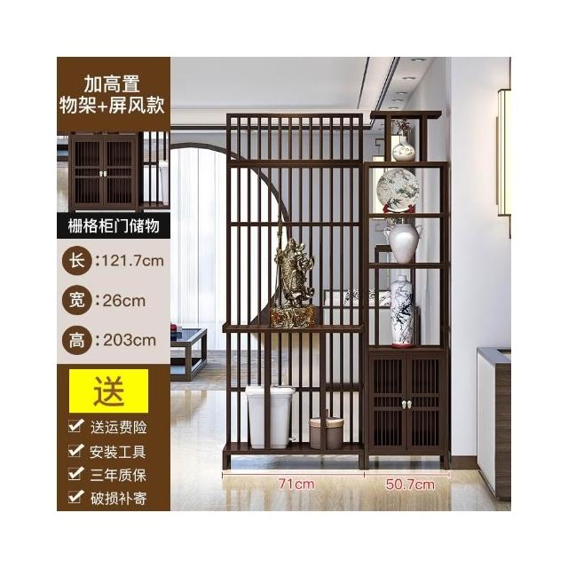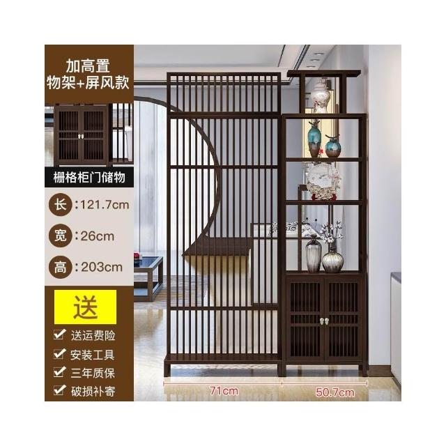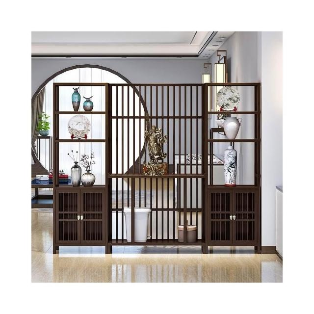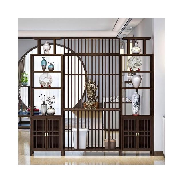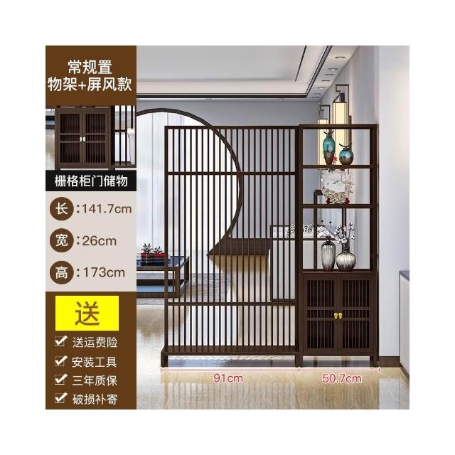新中式屏風隔斷牆客廳實木入戶玄關櫃子現代簡約鏤空格柵裝飾座屏