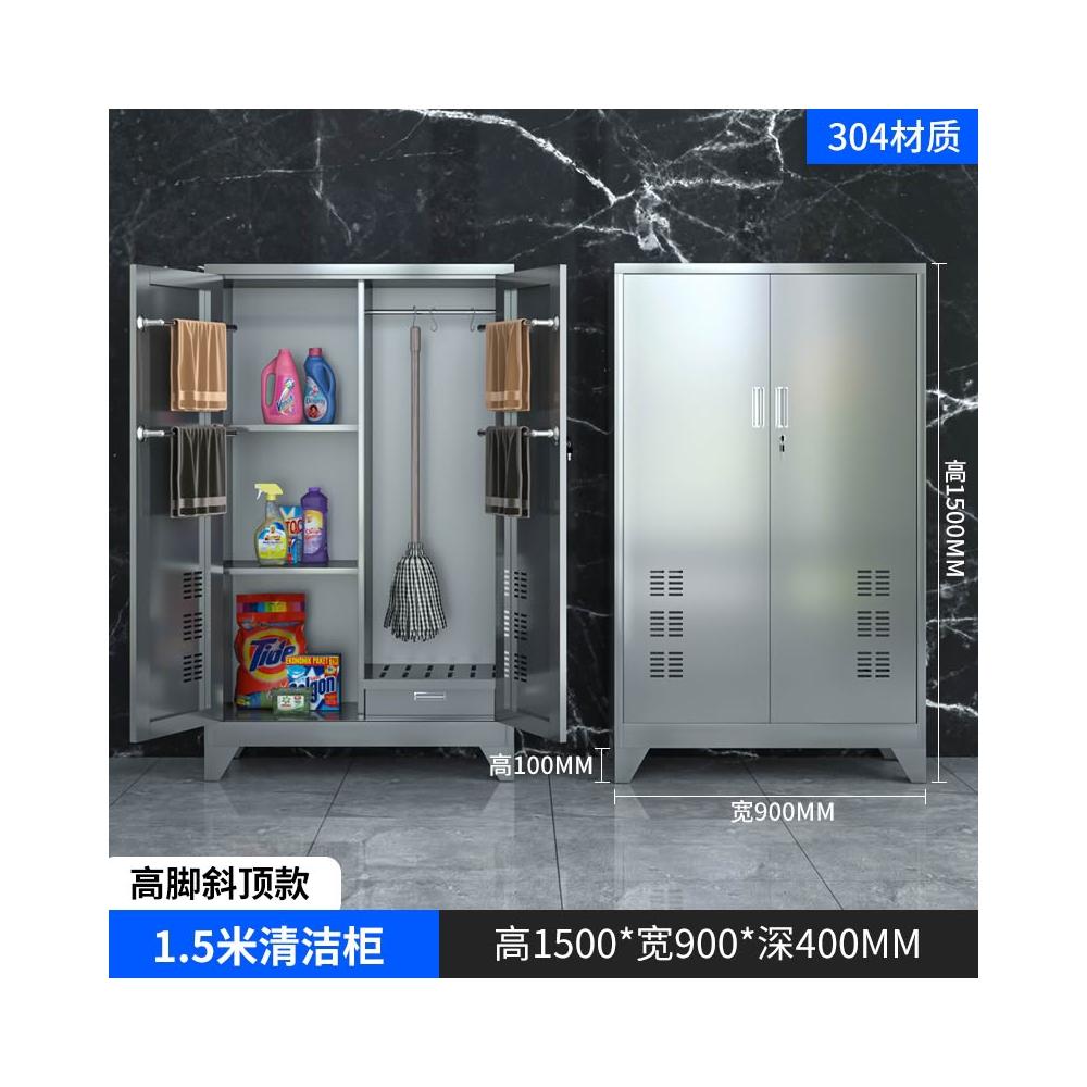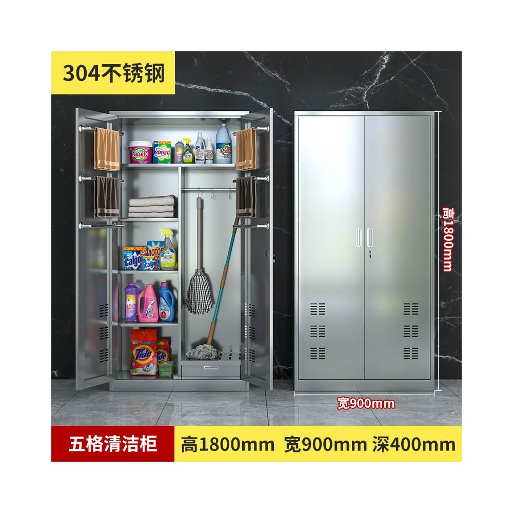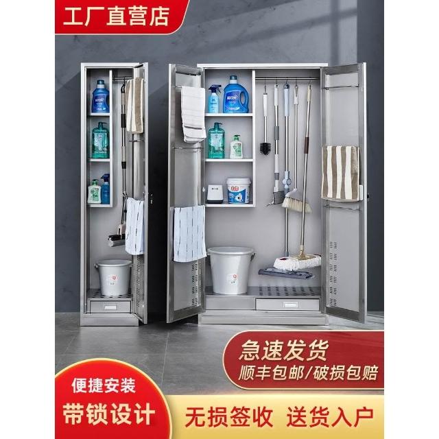 304不銹鋼清潔櫃學校工廠保潔衛生工具櫃家用儲物拖把掃把收納櫃