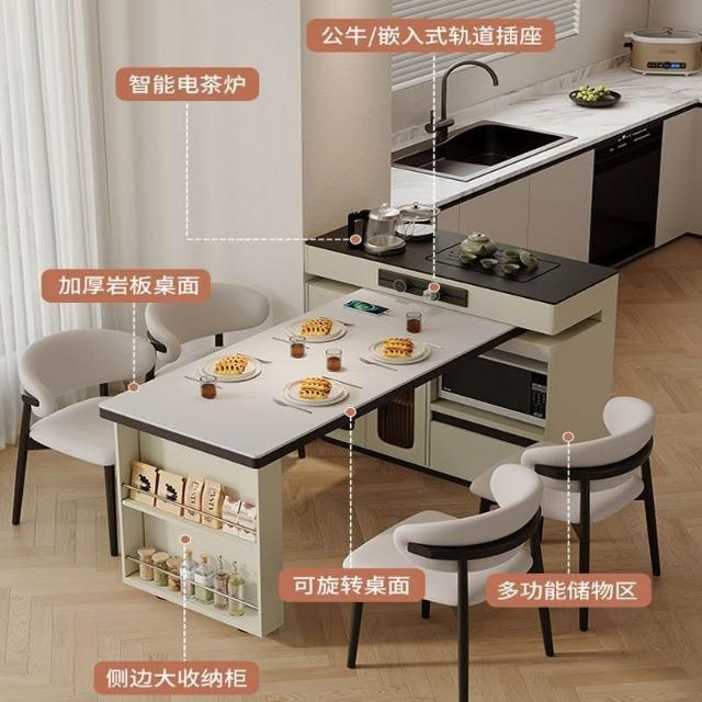 簡約岩板島台餐桌一體小戶型多功能新款旋轉中島家用實木伸縮吧檯