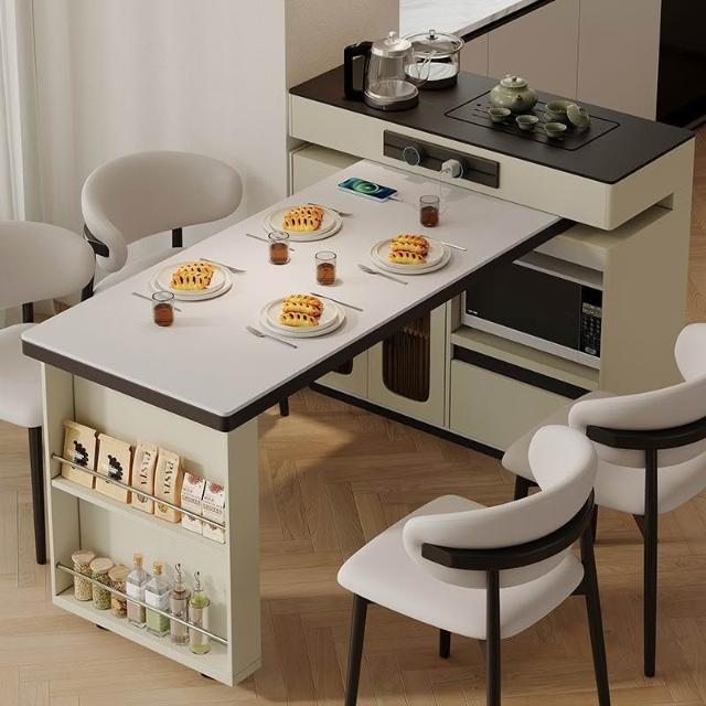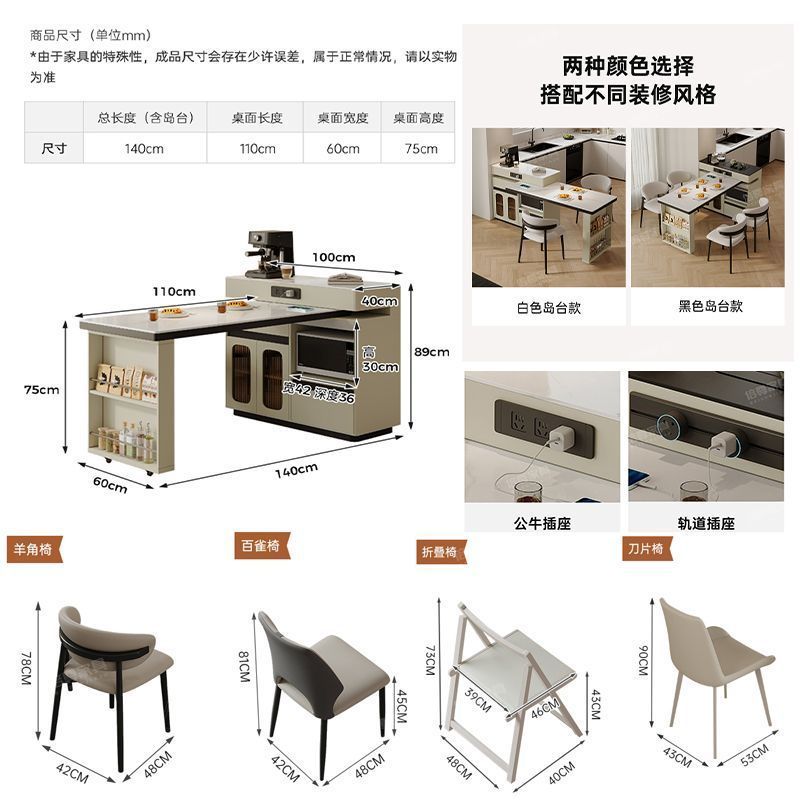 簡約岩板島台餐桌一體小戶型多功能新款旋轉中島家用實木伸縮吧檯
