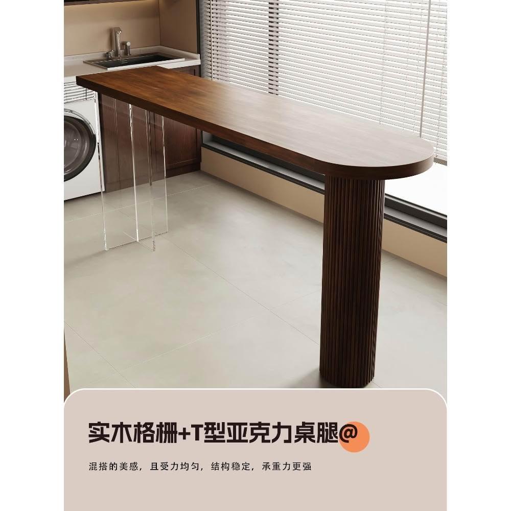 陽臺休閒輕奢長條桌家用戶型靠窗吧臺桌實木客廳亞克力桌腿高腳桌