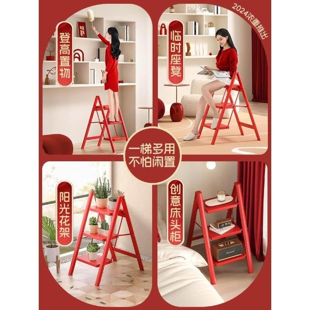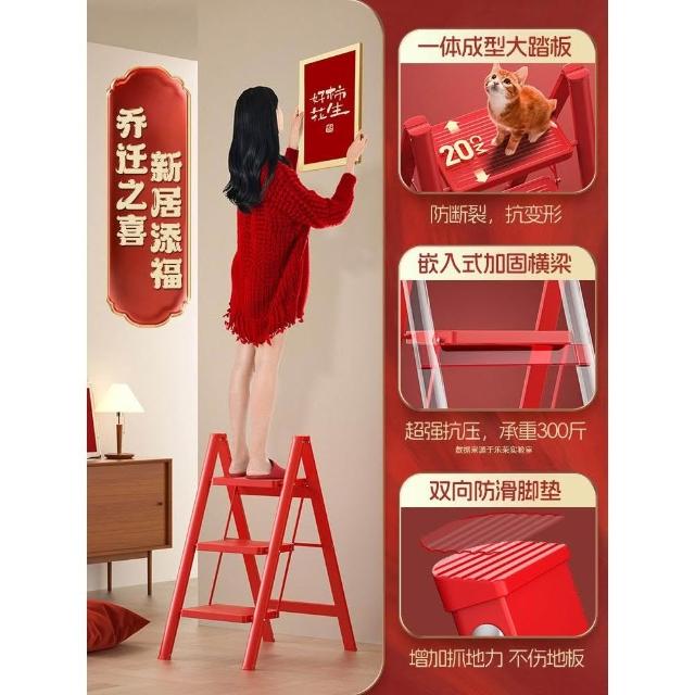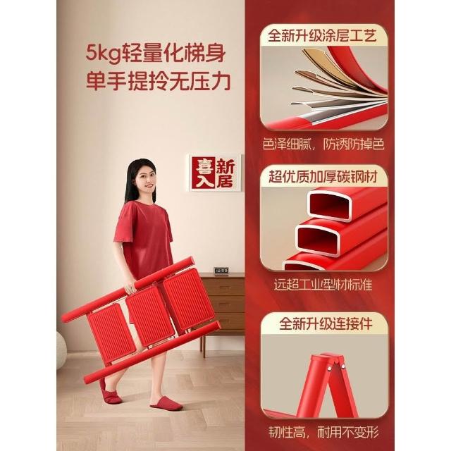 喬遷之喜紅梯子家用加厚折疊伸縮梯凳步步高升人字梯搬家禮物