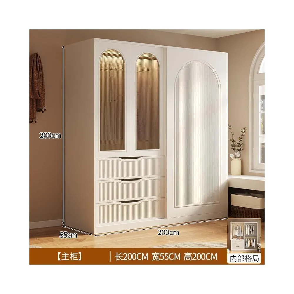 法式奶油風衣櫃家用臥室小戶型輕奢推拉門收納衣櫥衣櫃