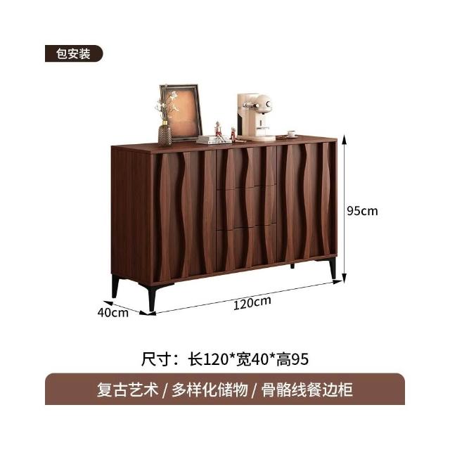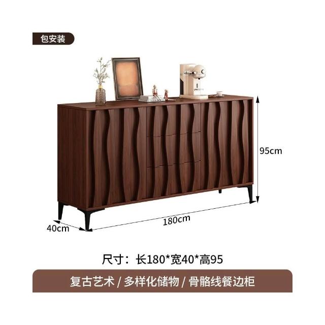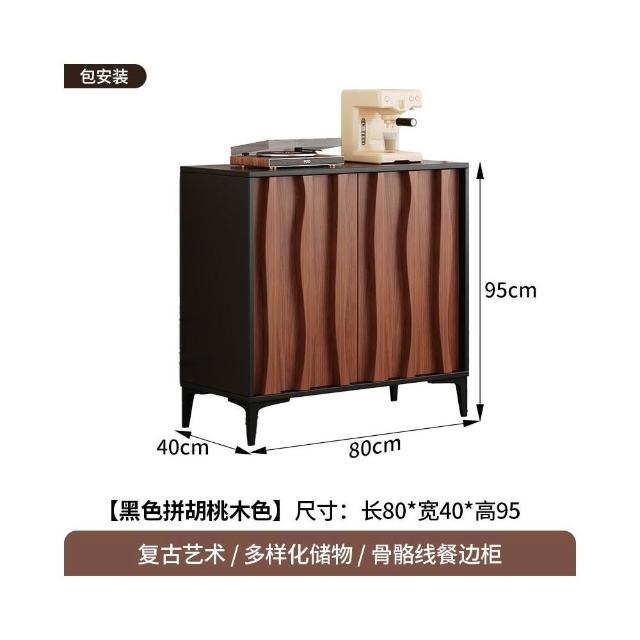 骨骼線中古復古風餐邊櫃現代簡約客廳靠牆一體家用玄關酒櫃置物架