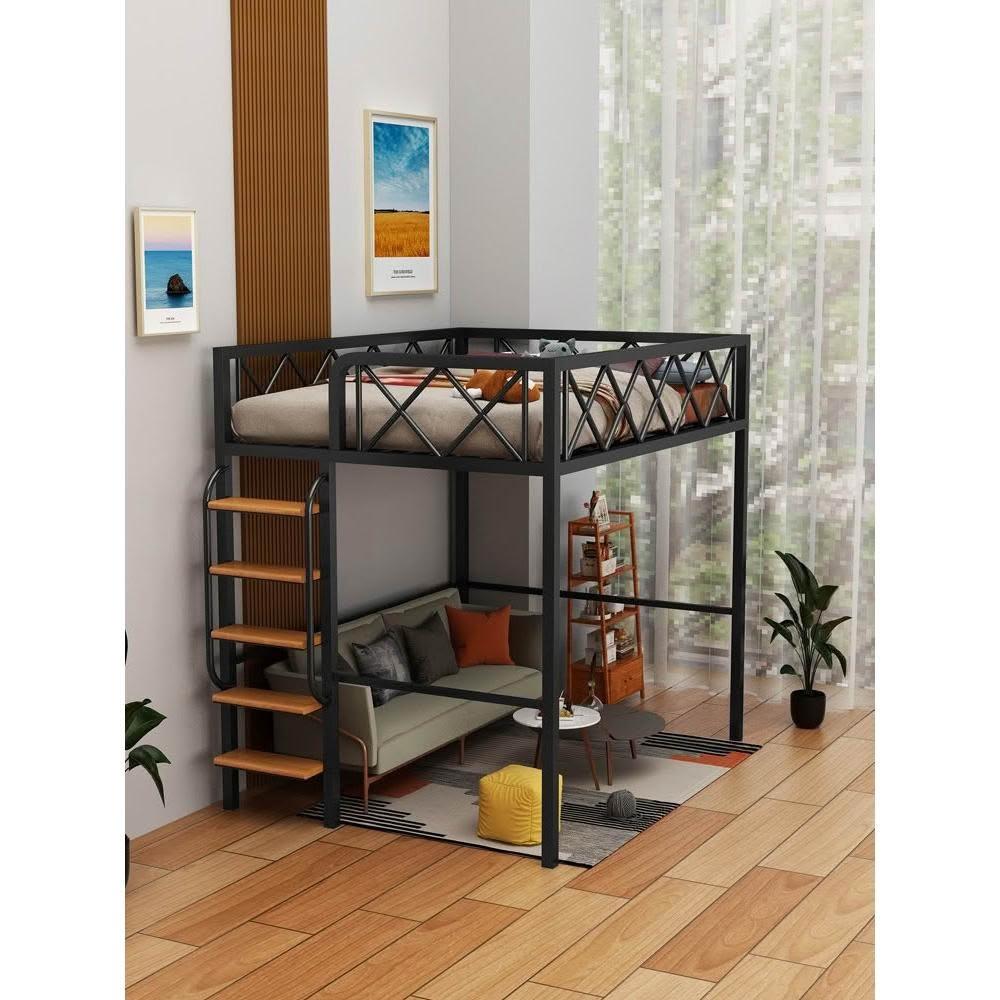 小戶型上床下空鐵藝高架床家用宿舍省空間高低床公寓複式樓閣床架