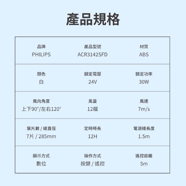 Philips 飛利浦12吋 窄邊框時尚風扇 【百年匠心系列】 電風扇 涼風扇 遙控風扇 循環扇 循環風扇 ACR2142SF