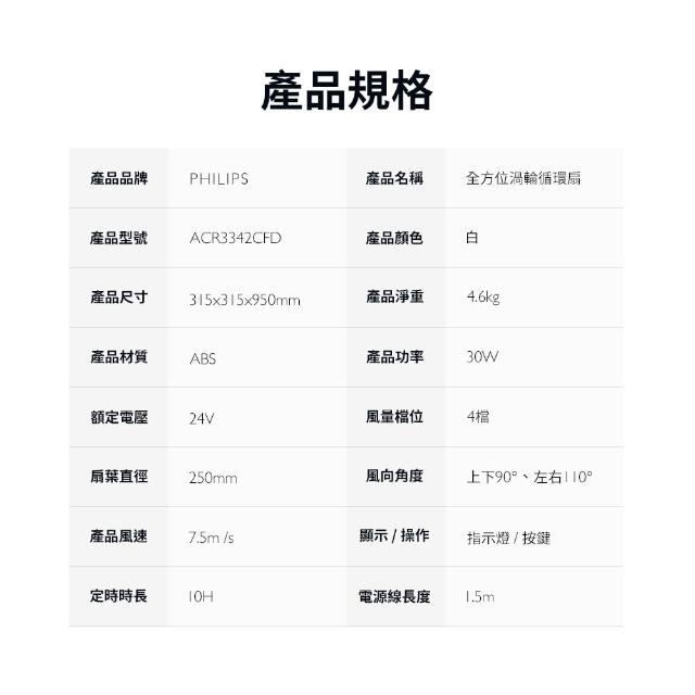 Philips 飛利浦全方位渦輪循環扇 【百年匠心系列】 ACR3342CFD 循環扇 電風扇 風扇 電扇