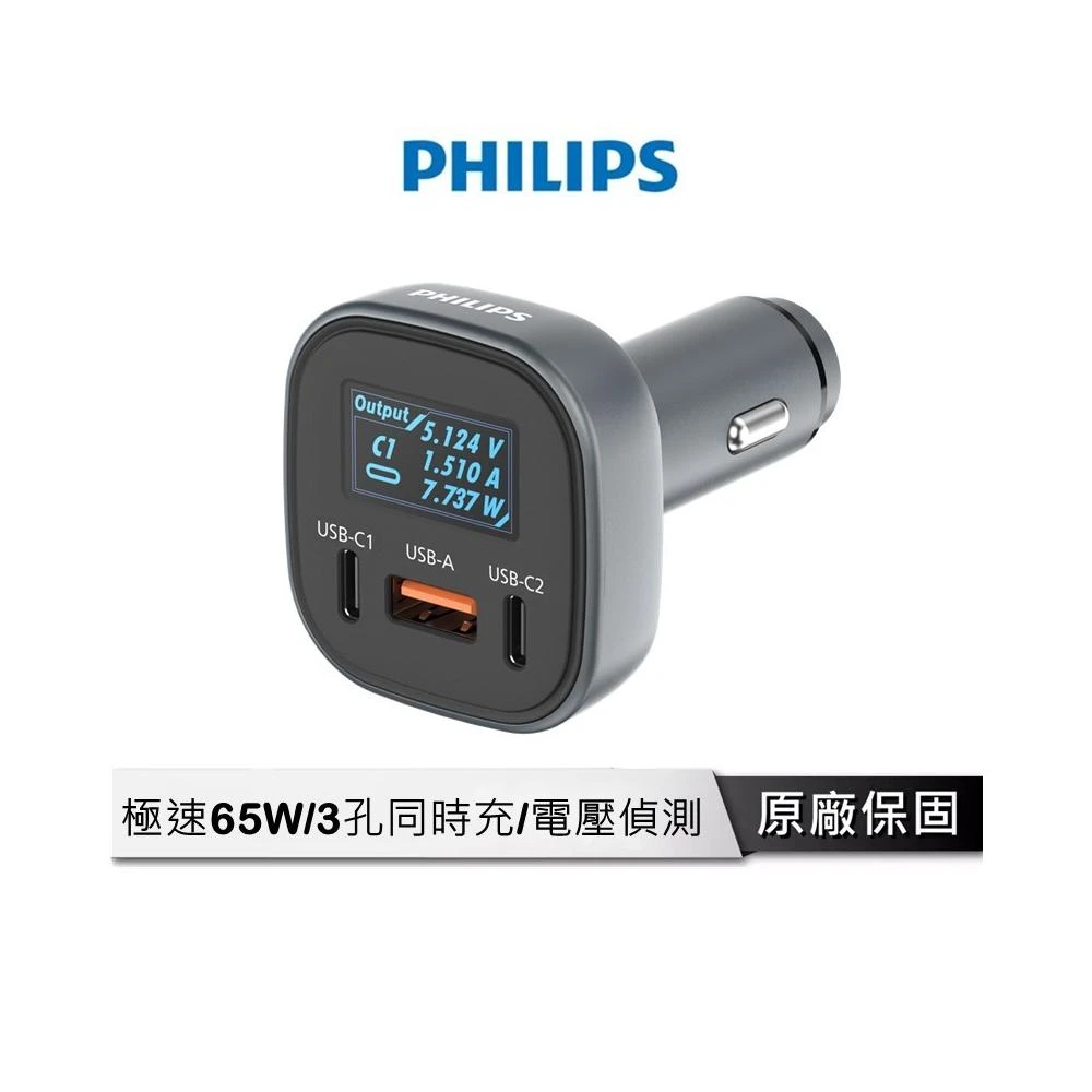 Philips 飛利浦100W PD車充 【數位顯示款】 PD 車充 點菸器 點菸器擴充 高速車充 快充車充 DLP3540C