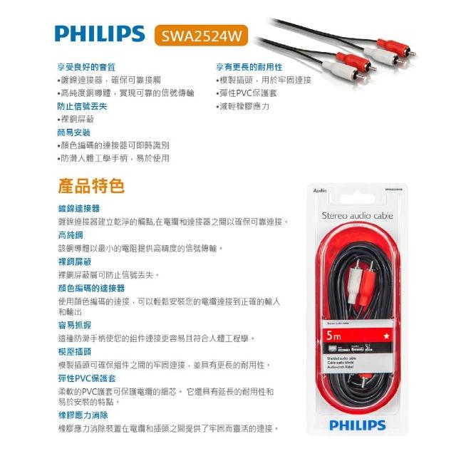 Philips 飛利浦立體音源線 【紅白、紅白黃】 紅白音源線 紅白黃音源線 訊號線 RCA線 音響線 音源AV端子