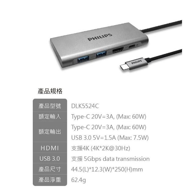 Philips 飛利浦多功能轉接器 轉換器 OTG TYPE-C轉HDMI TYPE-C轉接器 HUB DLK5524C
