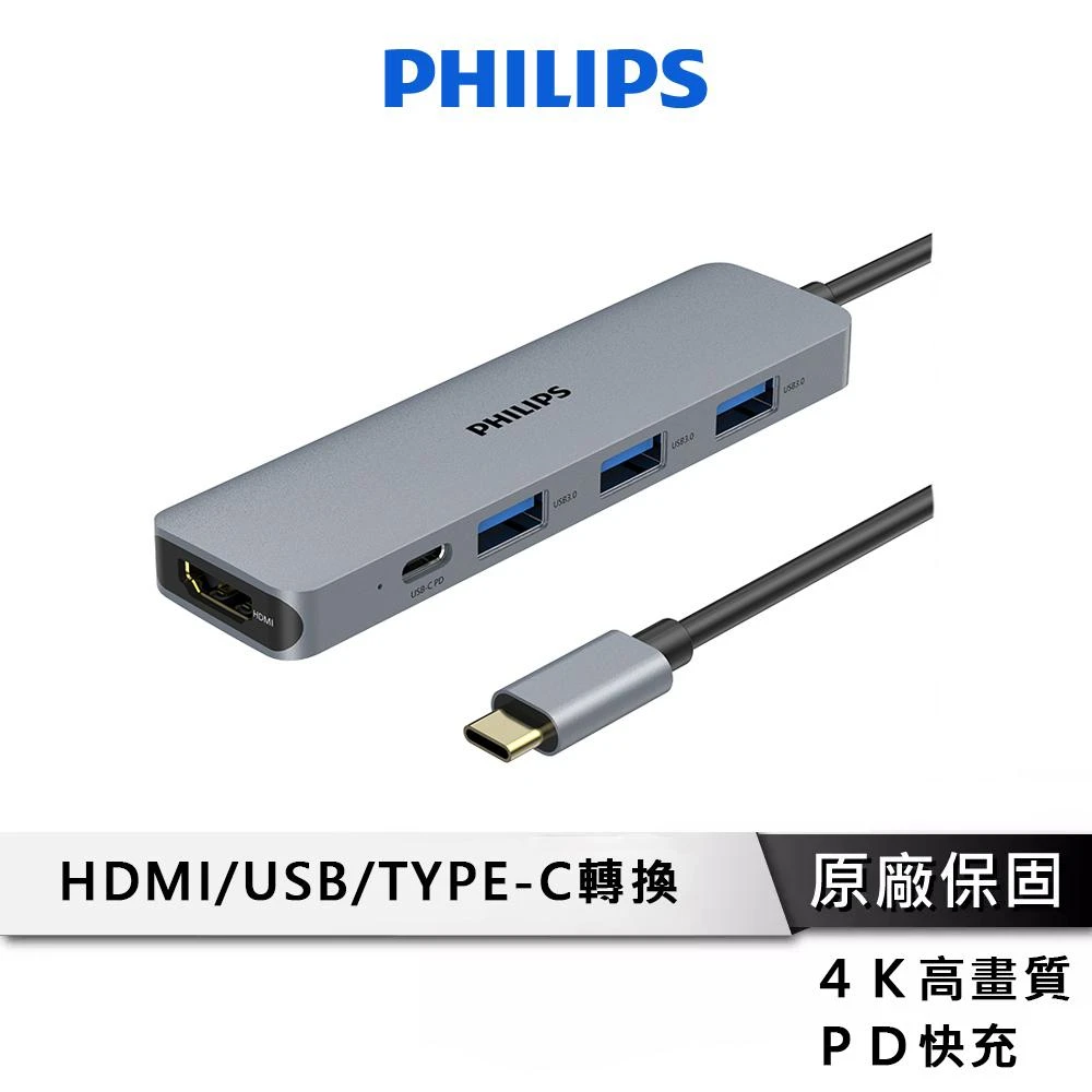 Philips 飛利浦5合1轉接器 擴充器 分線器 HUB Type-C轉HDMI USB延長線 PD快充 DLK5529C