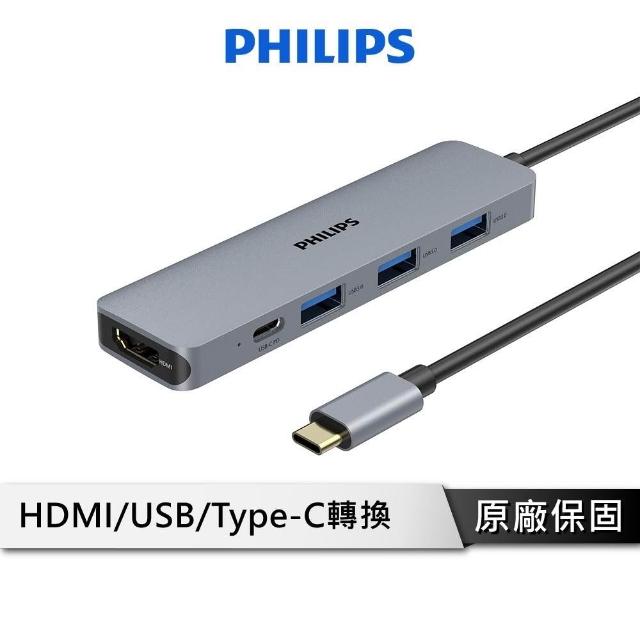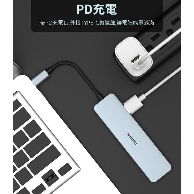 Philips 飛利浦5合1轉接器 擴充器 分線器 HUB Type-C轉HDMI USB延長線 PD快充 DLK5529C