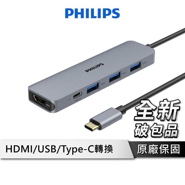 Philips 飛利浦5合1轉接器 擴充器 分線器 HUB Type-C轉HDMI USB延長線 PD快充 DLK5529C
