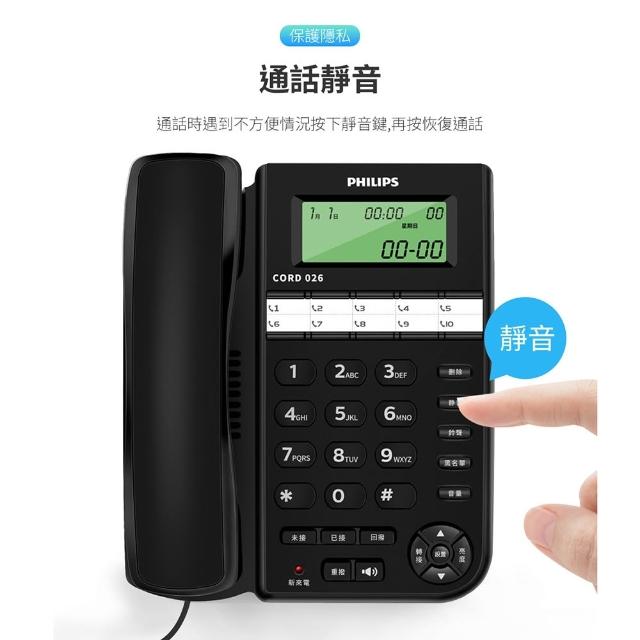 Philips 飛利浦有線電話 可接分機 POS機 黑名單 可靜音 可壁掛 大按鍵電話 螢幕顯示 CORD026B
