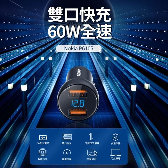 NOKIANOKIA 60W USB 車充 【液晶顯示】 快速車充 車用充電 P6105N