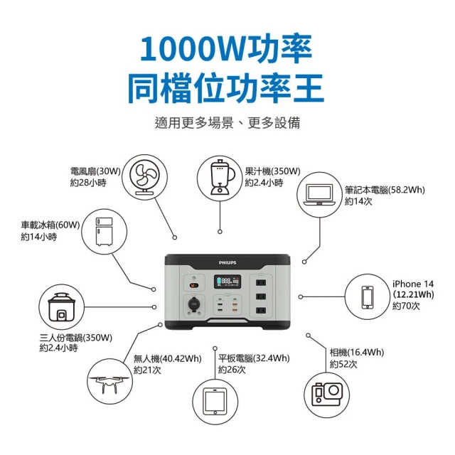 Philips 飛利浦戶外行動電源 【1000W UPS不斷電系統】 露營電源 發電機 儲能電池 儲能電源 DLP8092C