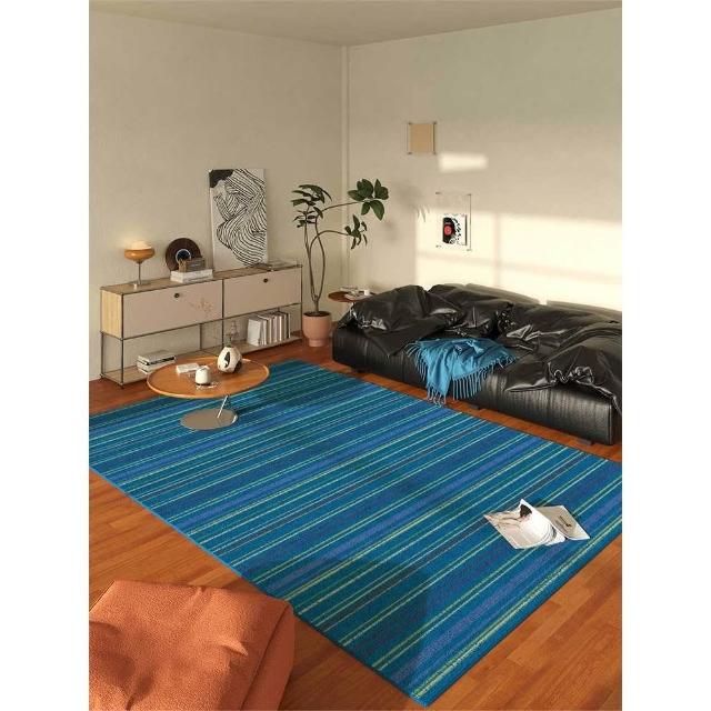 復古風藍色條紋地毯客廳 新款輕奢高級感沙發茶幾免洗可擦地墊
