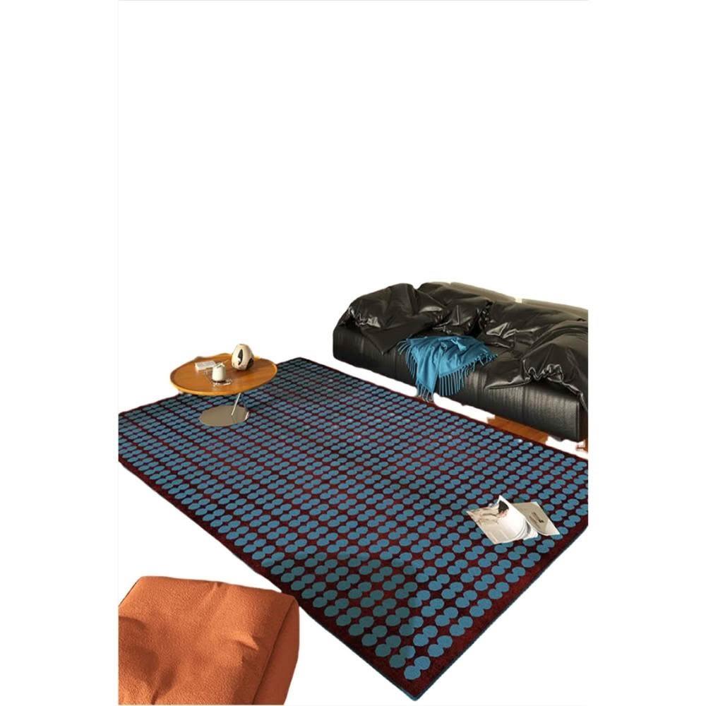 復古風藍色條紋地毯客廳 新款輕奢高級感沙發茶幾免洗可擦地墊