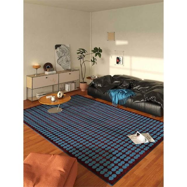 復古風藍色條紋地毯客廳 新款輕奢高級感沙發茶幾免洗可擦地墊