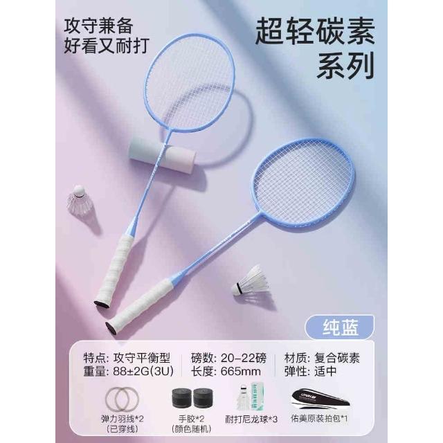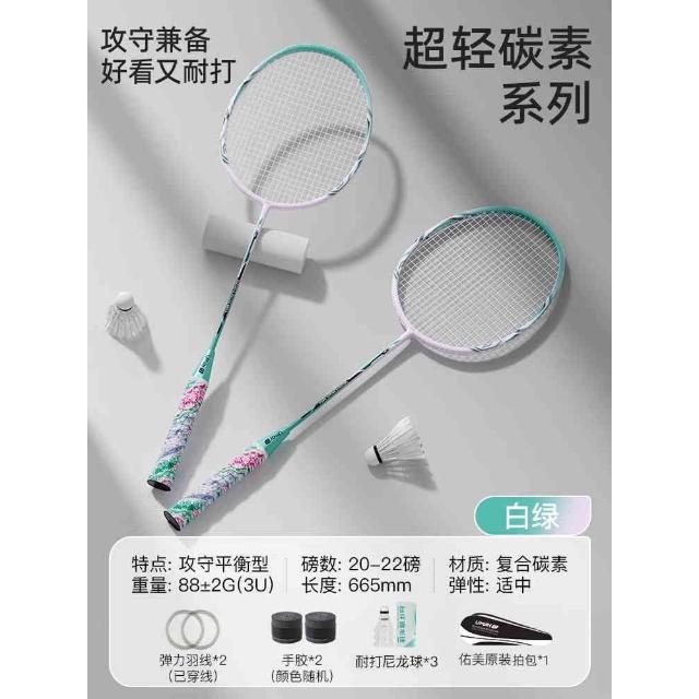 羽毛球拍 專業級羽毛球拍 全碳素纖維羽毛球拍 超輕耐用型羽毛球拍 單雙拍套裝