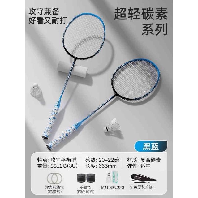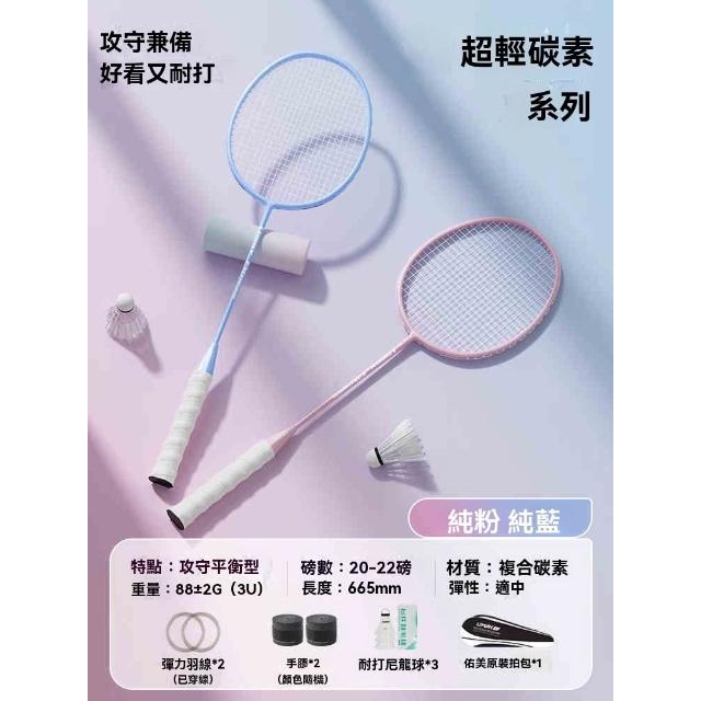 羽毛球拍 專業級羽毛球拍 全碳素纖維羽毛球拍 超輕耐用型羽毛球拍 單雙拍套裝