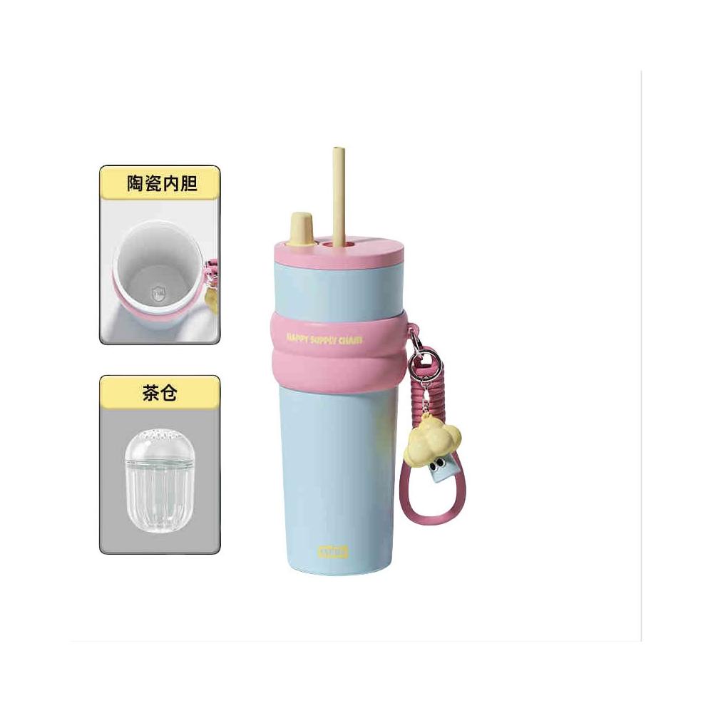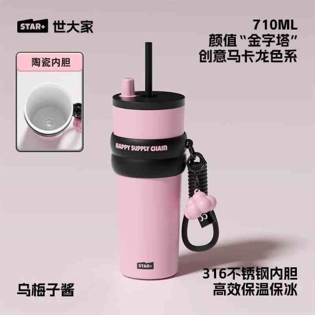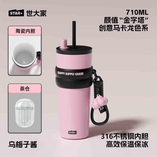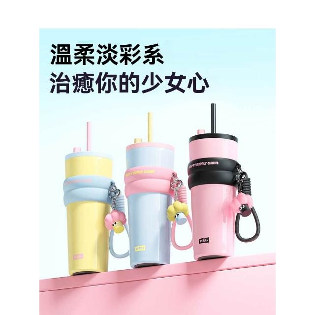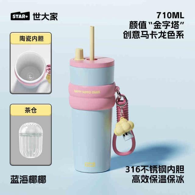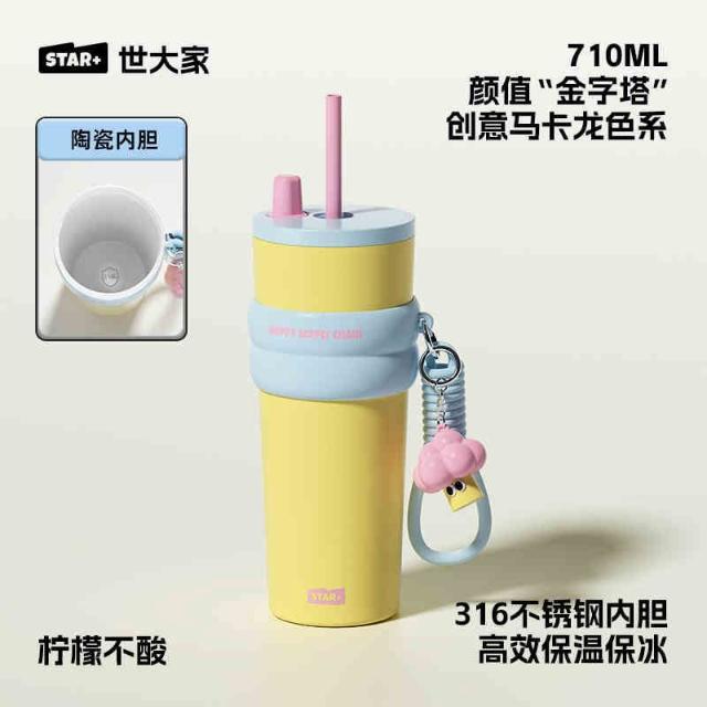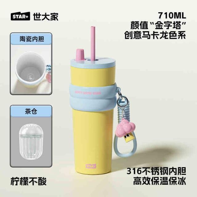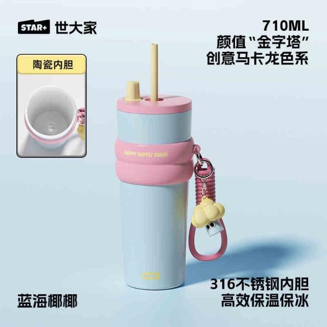 杯子 保溫杯 陶瓷內膽 不銹鋼杯 大容量吸管杯 大容量高顏值保溫杯 夏天保冰 馬卡龍配色冰霸杯