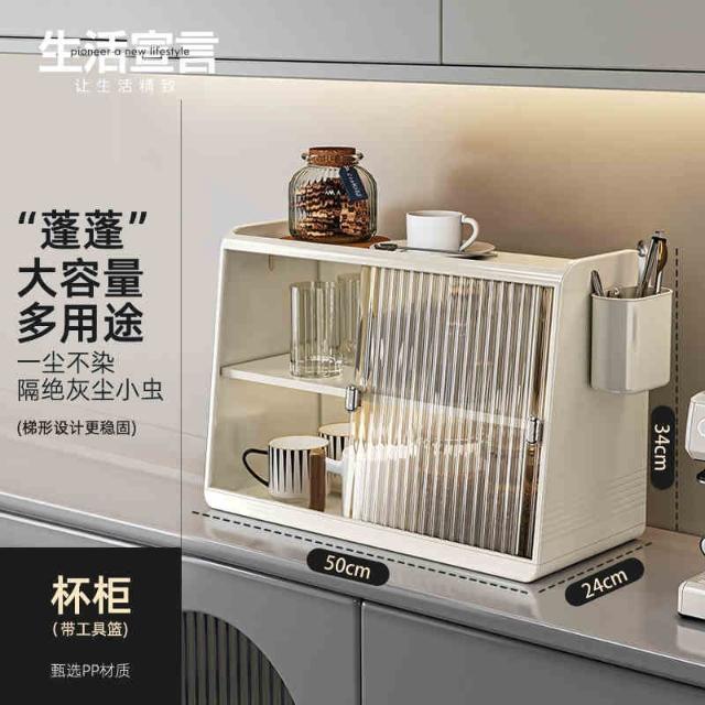 收納架 防塵杯架 置物架 杯子水杯茶杯架子 咖啡杯放杯子神器收納盒 隔板附門收納櫃 防塵收納櫃
