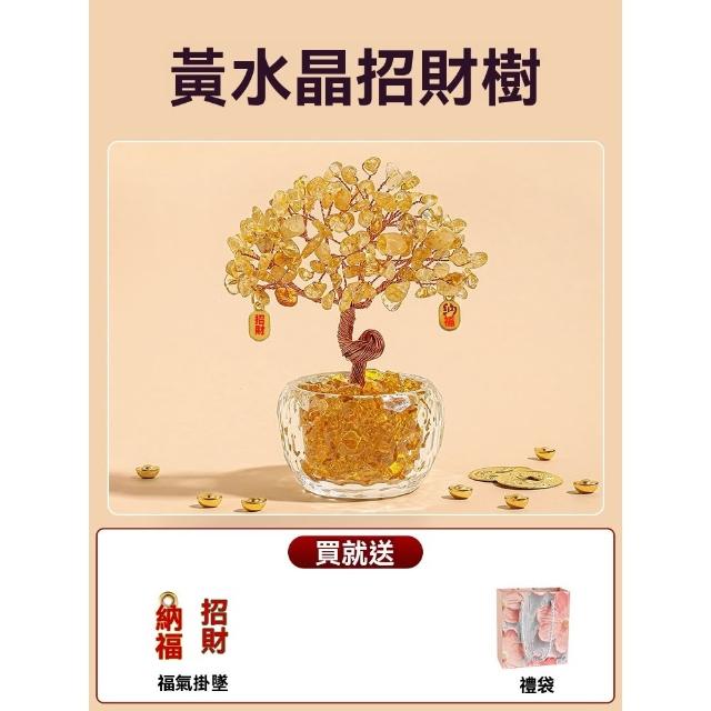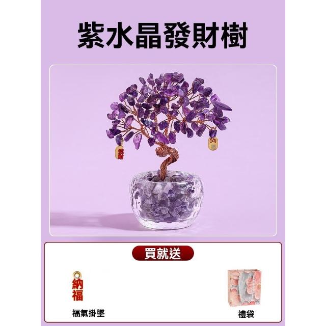 天然黃水晶發財樹擺件 紫水晶招財擺件 樹辦公室工位神器桌面裝飾品好物 風水擺飾