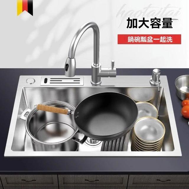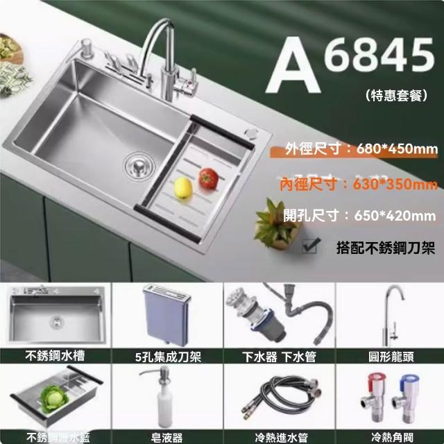 現貨福利清倉 68*45cm廚房洗菜盆304不銹鋼洗碗池厚水槽大單槽家用洗碗槽帶刀架
