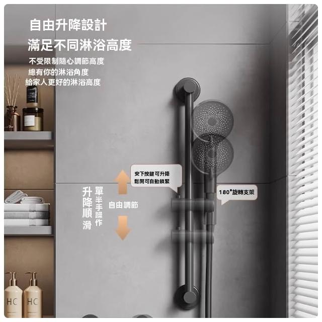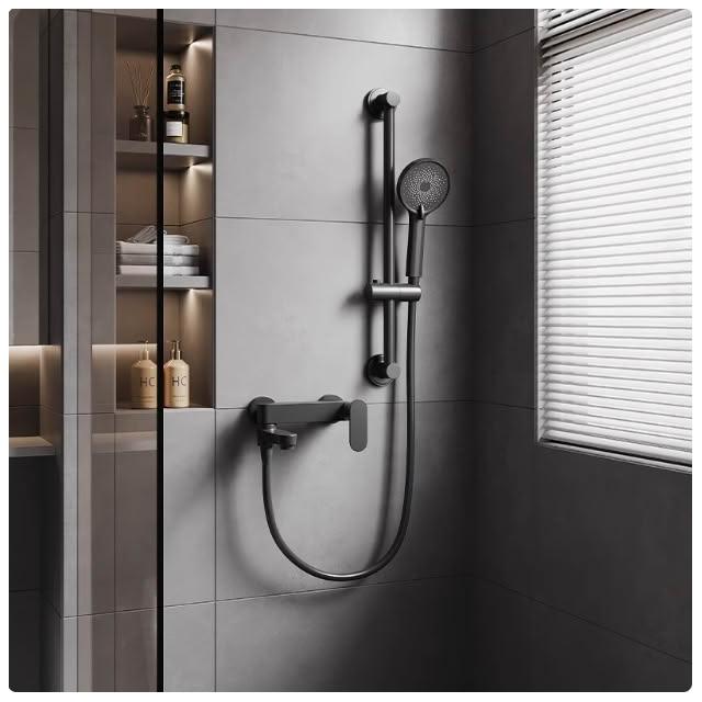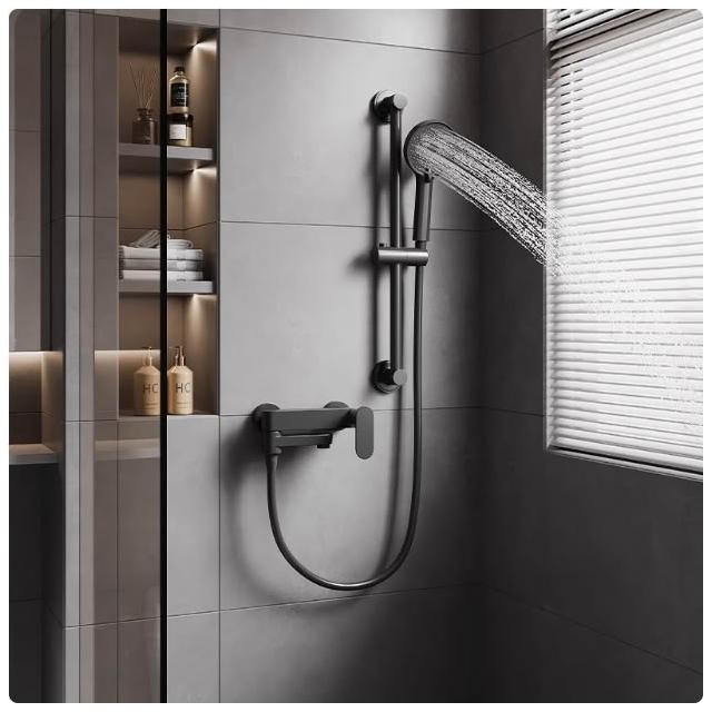 淋浴龍頭 花灑套裝 槍灰色 淋雨噴頭 浴室混水閥 浴缸水龍頭(花灑/淋浴噴頭/6檔手噴出水)