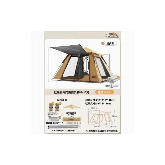 戶外露營便攜式帳篷 全自動速開 野外露營裝備 野營過夜加厚防雨(防曬/防雨/秒搭速建/送防潮墊)