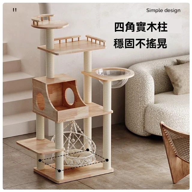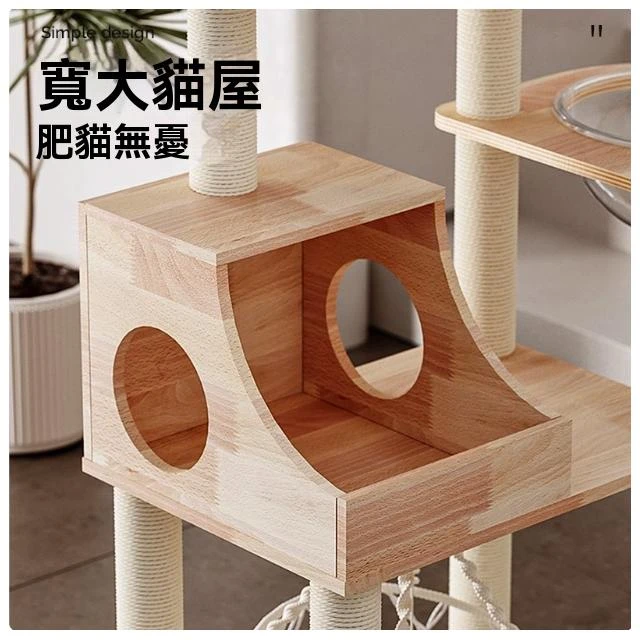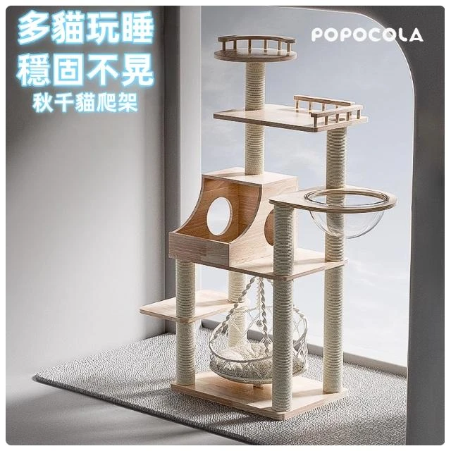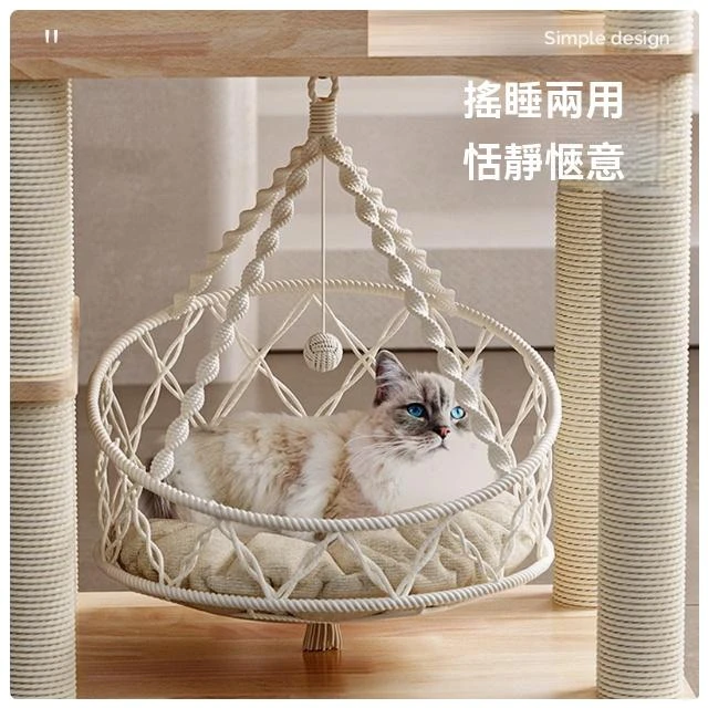 加高穩固POPO實木秋千貓爬架 大型貓窩貓樹一體 布偶大貓多貓貓架(貓爬架/貓跳台/貓抓板/實木/多層/劍麻)