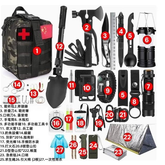 造物集市地震生存包 戶外緊急避難求生裝備 野外應急 荒野戰爭儲備物資全套