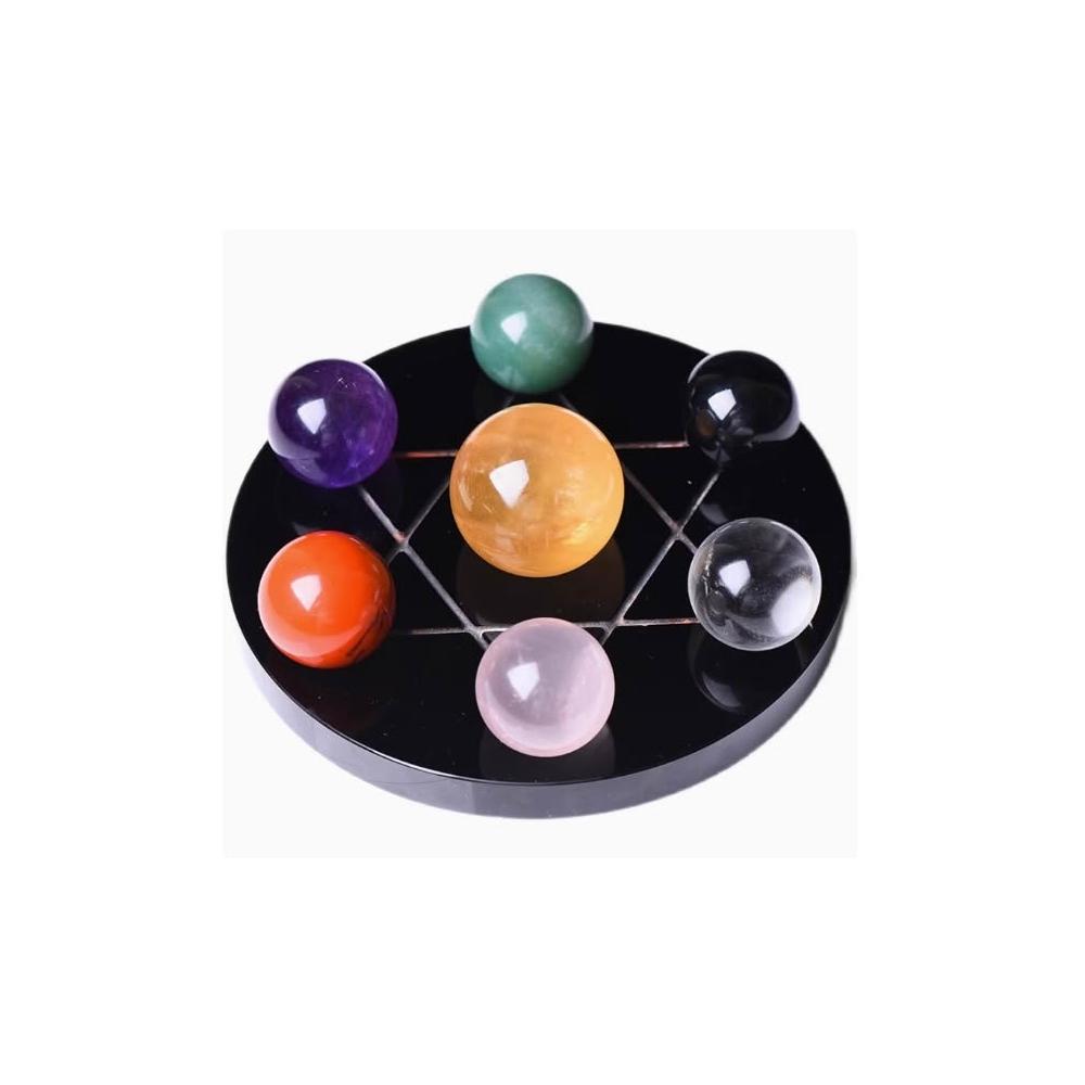 造物集市天然七彩水晶球 七星陣擺件 白黃粉紫綠紅黑原石 玄關家居客廳裝飾品