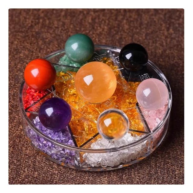 造物集市天然七彩水晶球 七星陣擺件 白黃粉紫綠紅黑原石 玄關家居客廳裝飾品