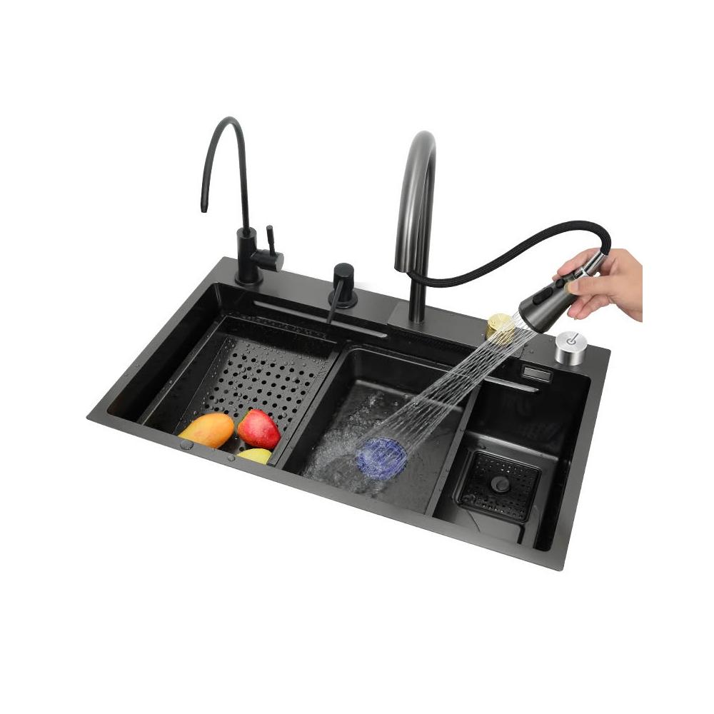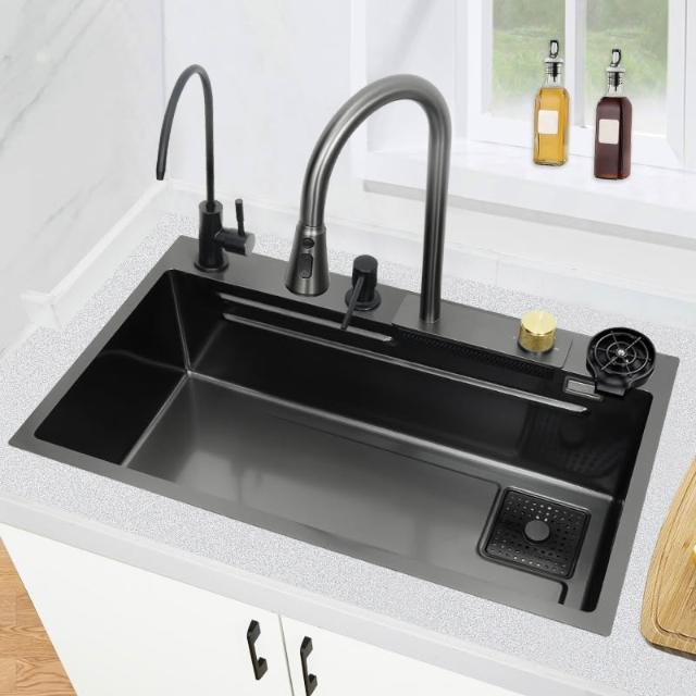 造物集市75*45廚房飛雨瀑布水槽 大單槽 台下盆 加厚304不銹鋼 洗菜盆 家用洗碗水池(水槽/單槽/廚房水槽/洗碗池/洗菜盆