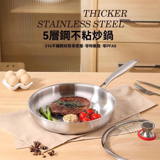 無塗層 304不銹鋼 不粘鍋 家用平底煎鍋 牛排煎蛋炒鍋 燃氣電磁灶專用(平底鍋/煎鍋/炒鍋)