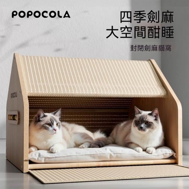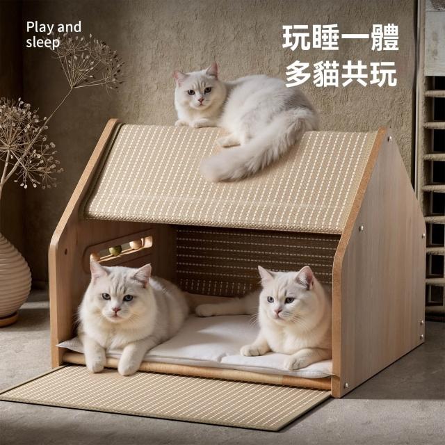 喵三狗四POPO貓窩 四季通用 封閉式劍麻 安全感貓抓板 貓咪房子 貓別墅 貓屋 貓帳篷