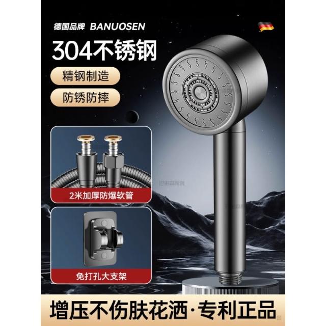 造物集市304不銹鋼增壓花灑噴頭家用超強大出水浴室洗澡淋沐浴蓮蓬頭套裝