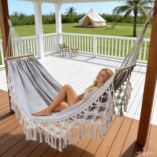 造物集市波西米亞流蘇吊床戶外加密帆布防側翻雙人秋千加寬陽臺家用搖床