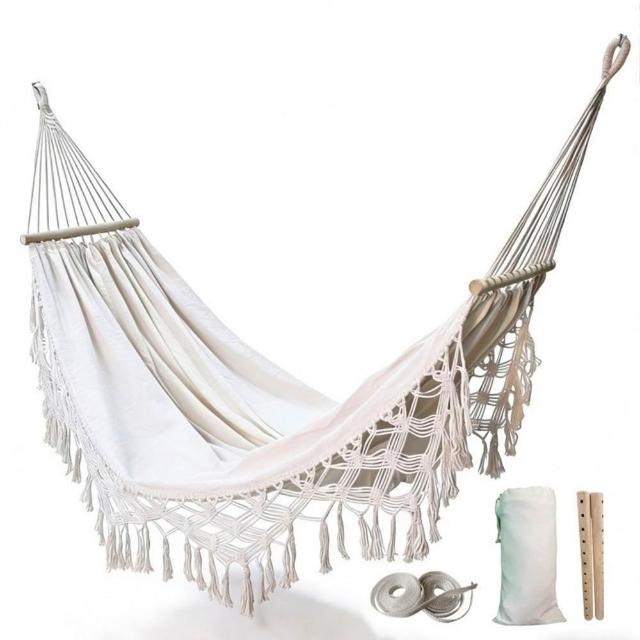 造物集市波西米亞流蘇吊床戶外加密帆布防側翻雙人秋千加寬陽臺家用搖床