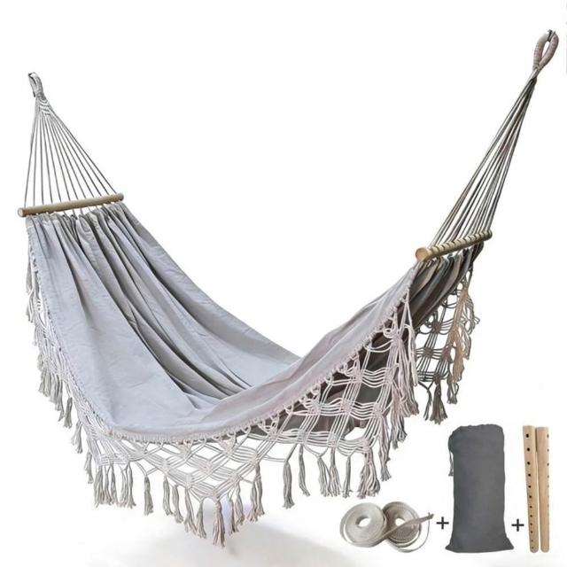 造物集市波西米亞流蘇吊床戶外加密帆布防側翻雙人秋千加寬陽臺家用搖床