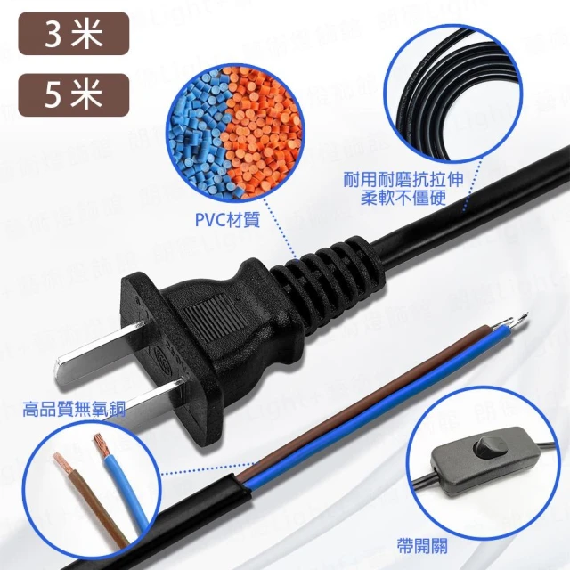 美規電源線 美規插頭 3米 5米 長插頭 轉接燈具 電源線 美式電源線 連接插頭 AC線 美標插頭 帶開關