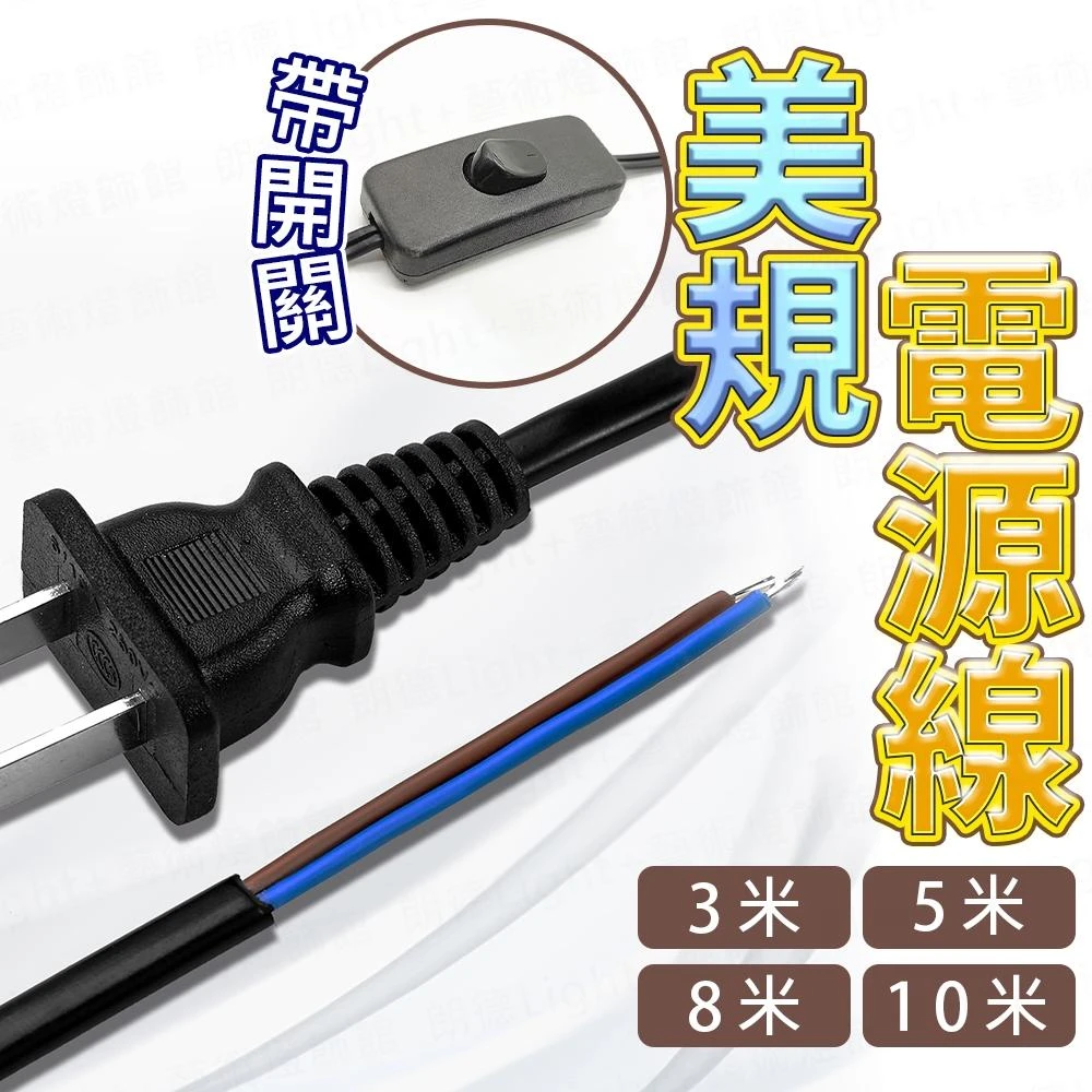 美規電源線 美規插頭 3米 5米 長插頭 轉接燈具 電源線 美式電源線 連接插頭 AC線 美標插頭 帶開關