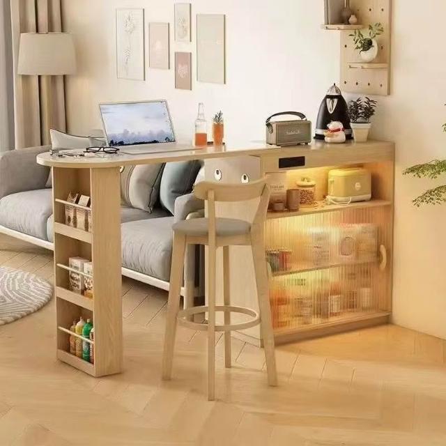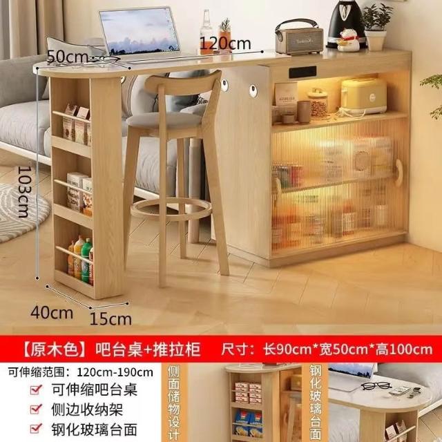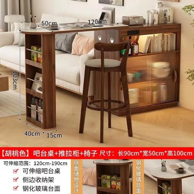 日式岩板纹吧台桌可伸缩高级隔断小户型家用多功能客厅储物