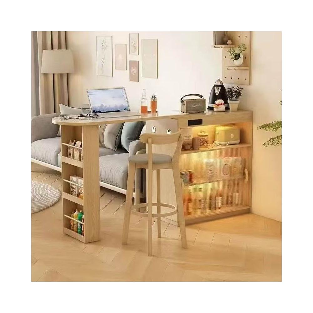 日式岩板纹吧台桌可伸缩高级隔断小户型家用多功能客厅储物