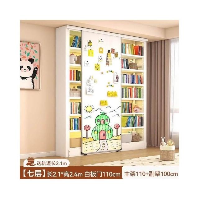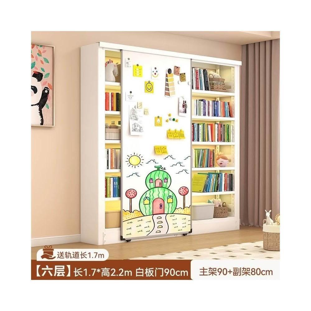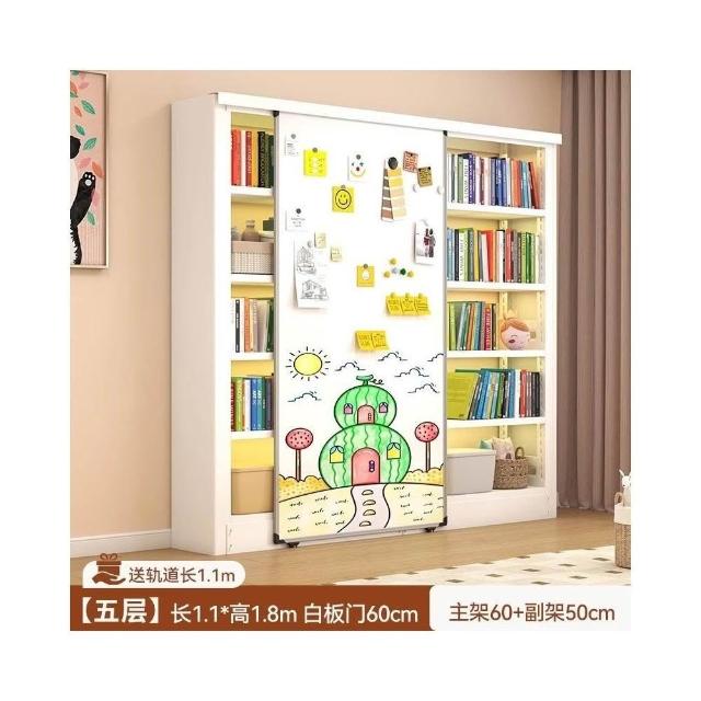 家用帶白板書架 陽臺客廳書房一體靠牆多層落地置物架 簡易防塵書櫃