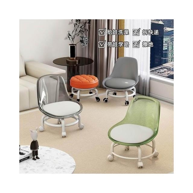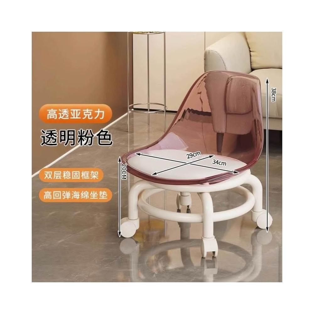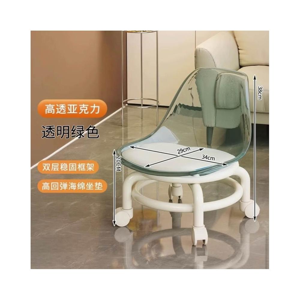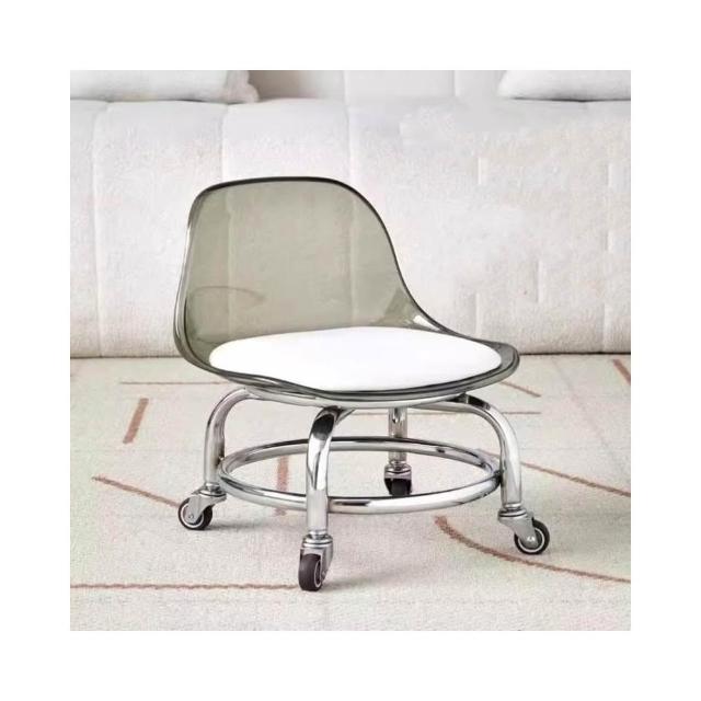 亞克力萬向輪小凳子家用靜音滑輪矮凳帶輪換鞋凳客廳靠背椅子